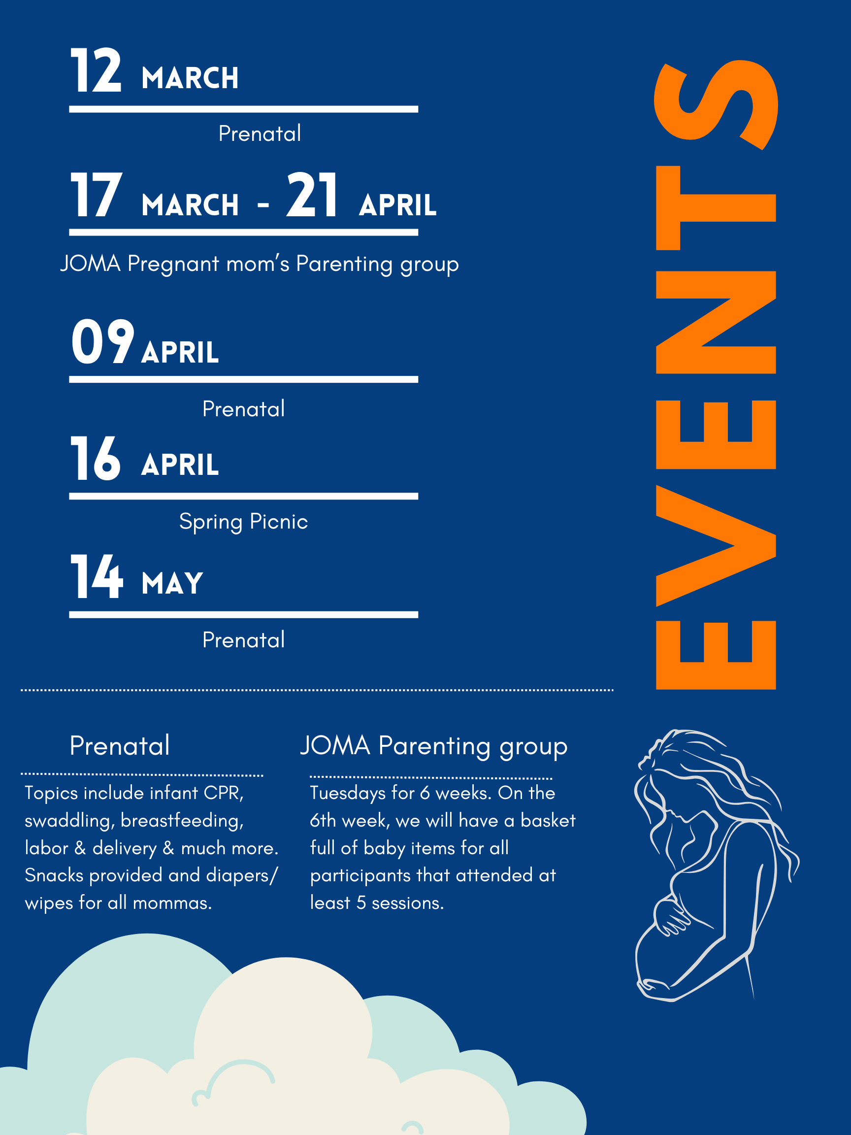 6 week parenting/mentoring class. Incentive gifts each week. Baby shower gift basket upon completion.